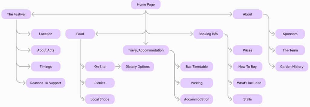 This Hierarchical Task Analysis shows where each page leads to and what is on it. This helps to clarify the amount of information on each page, showing that roughly the same number of points are covered in each to evenly spread out the information. This ensures that no page is much more or less crowded than another, meaning viewers are not over or underwhelmed by what is there.
